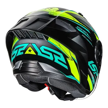 • Spoiler integrado: Construído em ABS de alta qualidade, este spoiler traseiro deixa o seu OF616 AIRFLOW II ainda mais estiloso e agressivo. Além de ajudar a diminuir o arrasto do vento, por tornar o capacete mais aerodinâmico. As saídas de ar do capacete estão integradas sob o spoiler;